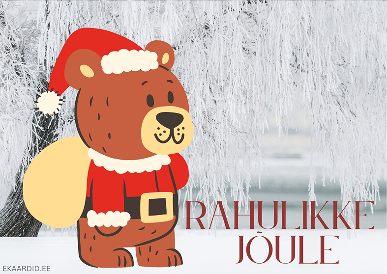 Soovi oma lähedastele rahulikke jõule selle armsa karuga kaunistatud jõulukaardiga. See on ideaalne tahtpäevakaart jõuludeks.