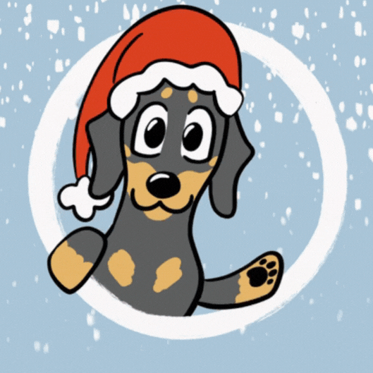 Jõulukaardil armas koer jõuluvanamütsiga GIF