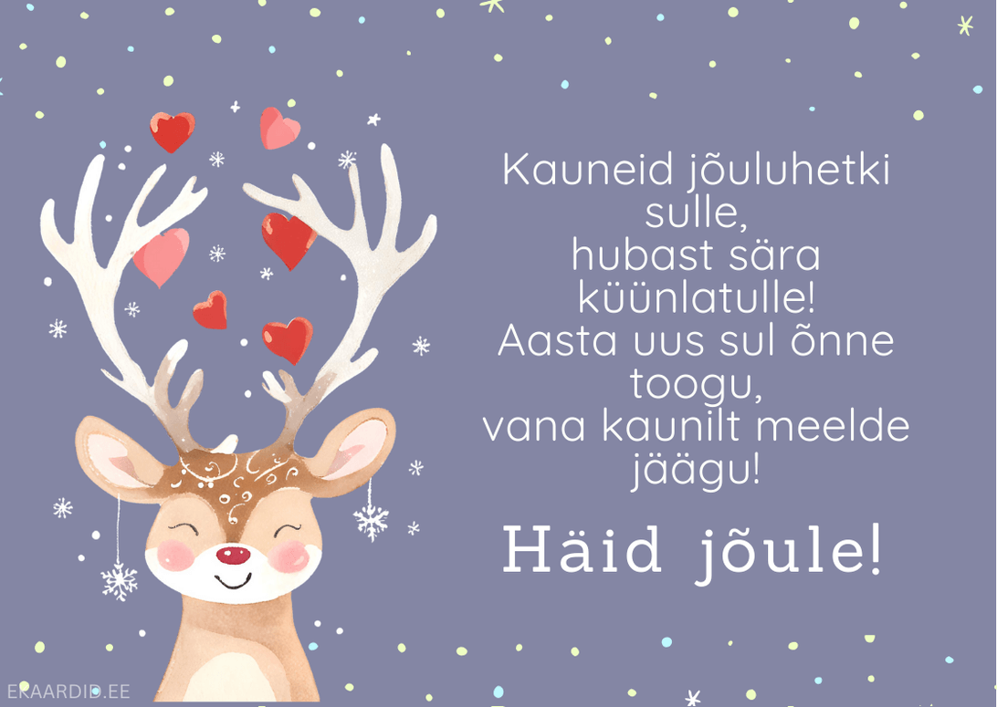 Soovi oma lähedastele rõõmsaid jõule selle armsa põhjapõdraga kaardiga. Kaardil on kujutatud armas põhjapõder, kes on ümbritsetud südametega. See on ideaalne jõulukaart perele ja sõpradele.