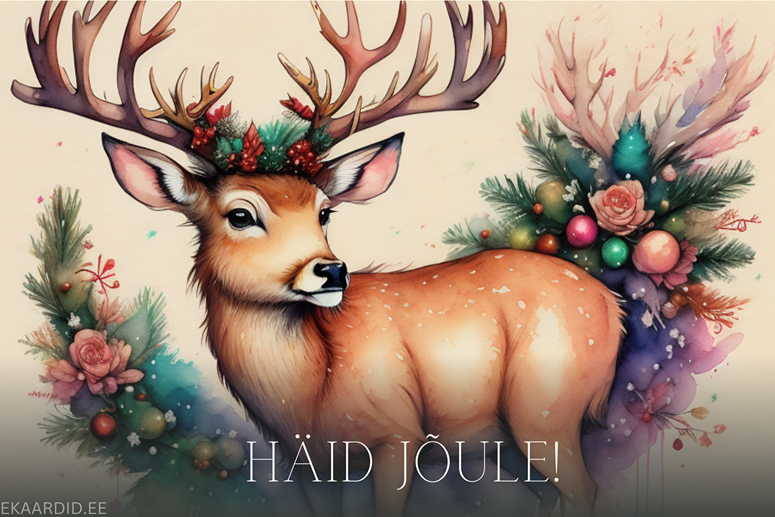 Sooja ja pidulikku jõulukujundusega kaart. Hirve kujundus on mahlane ja detailne, sobib ideaalselt jõulude tervitamiseks. See on suurepärane Jõulukaart lähedastele.