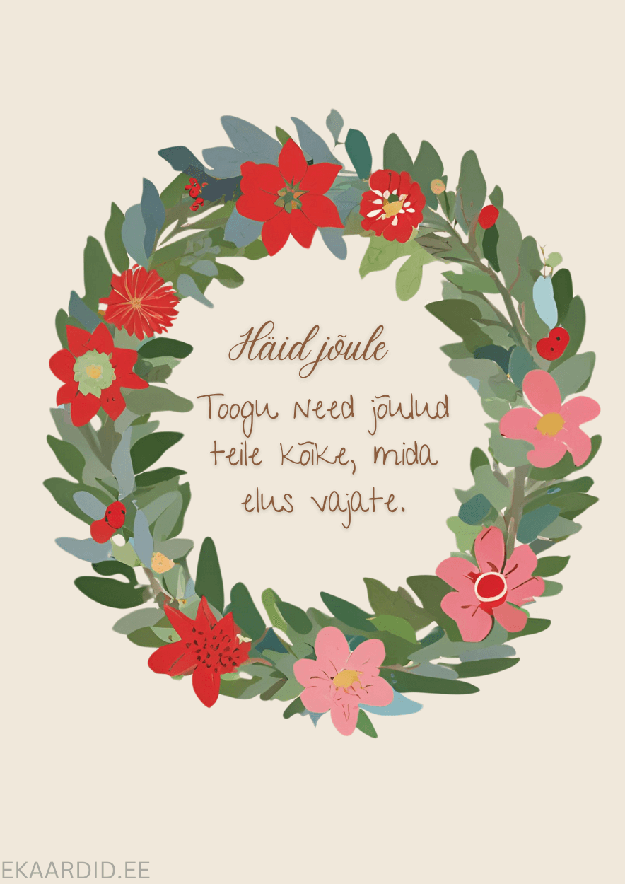 Sooja ja südamliku sõnumiga jõulukaardil on kujutatud ilus lillepärg. See on ideaalne jõulukaart lähedastele ja sõpradele.