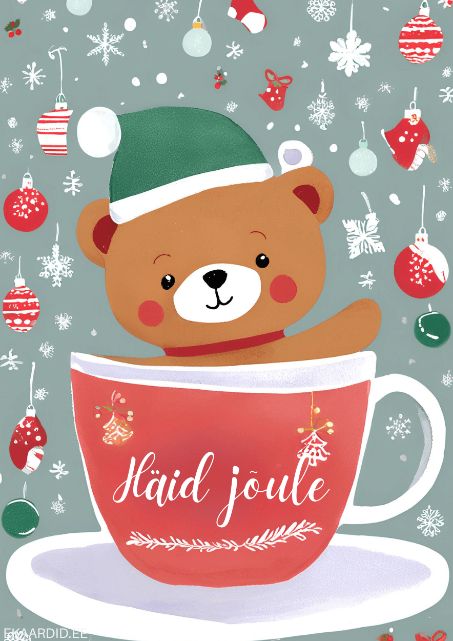 Sooja ja hubast jõulutunnet pakkuv jõulukaart. Armas karu jõulukruusis toob naeratuse näole. See on ideaalne jõulukaart lähedastele.