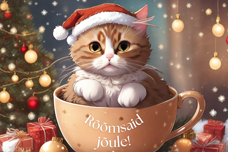 Sooja ja hubast jõulutunnet pakkuv jõulukaart armas kassitaustaga. See on ideaalne jõulukaart lähedastele ja sõpradele.