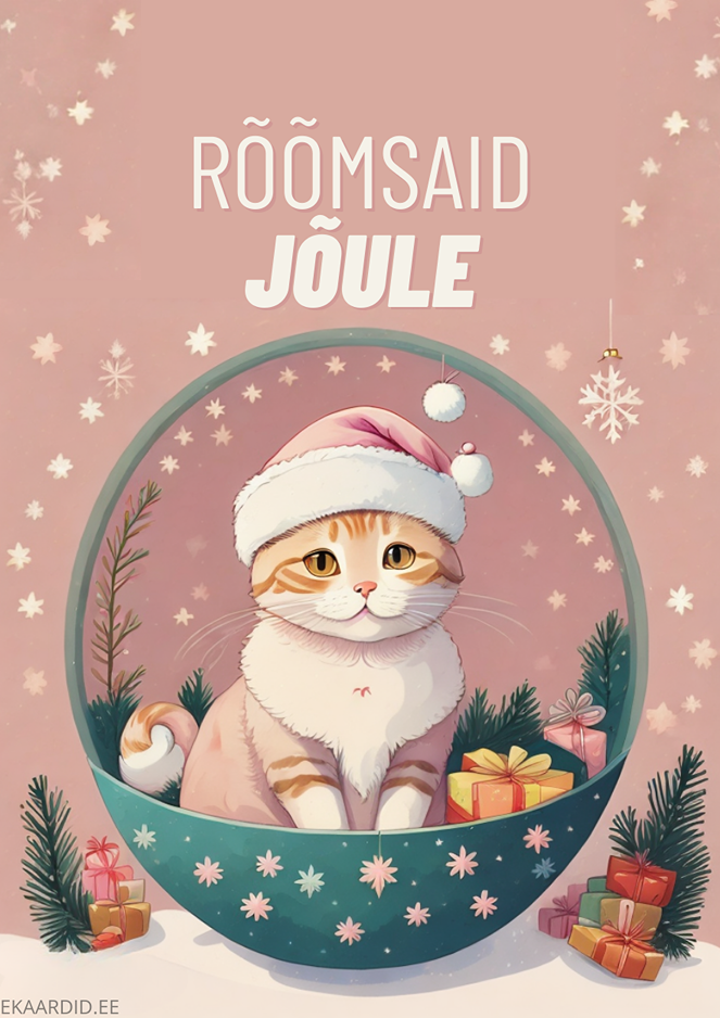 Sooja ja hubast jõulutunnet pakkuv jõulukaart armasa kassitaustaga. See on ideaalne jõulukaart lähedastele ja sõpradele.