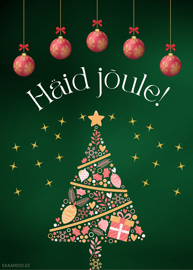 Soojad jõulusoovid selle kauni jõulukaardiga, millel on kujutatud jõulupuud ja jõulupalle. Ideaalne kaart jõulude tähistamiseks.