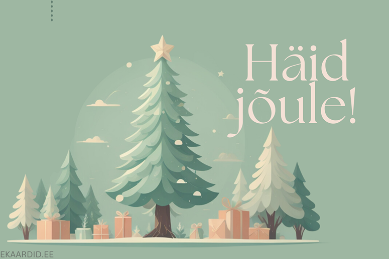 Soovi oma lähedastele rõõmsaid jõule selle kauni jõulukaardiga. Kaardil on kujutatud jõulupuu ja kingitused lumises metsas. See on ideaalne jõulukaart perele ja sõpradele.