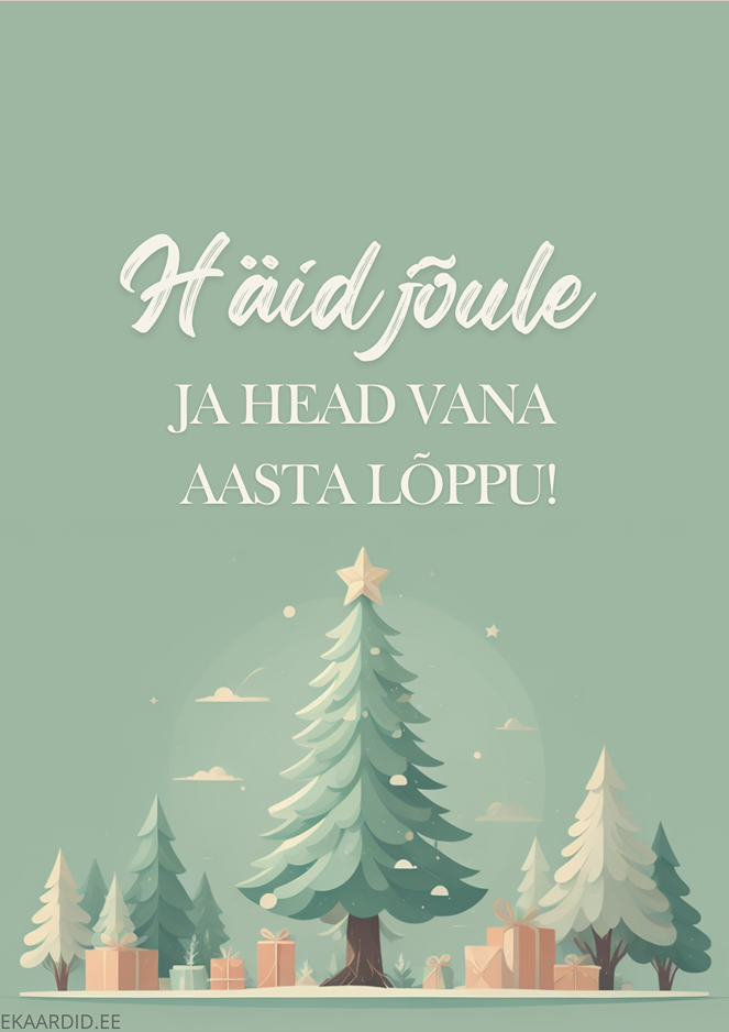 Soovi oma lähedastele rõõmsaid jõule ja head uut aastat selle kauni jõulukaardiga. Kaardil on kujutatud elegantne jõulupuu ja kingitused. See on ideaalne jõulukaart perele ja sõpradele.