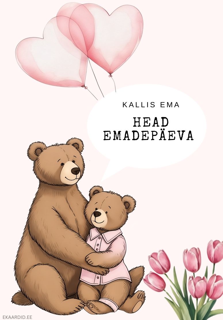 Sooja ja südamliku emadepäeva kaardiga kaunistatud armsate karudega. Ideaalne kingitus emale!