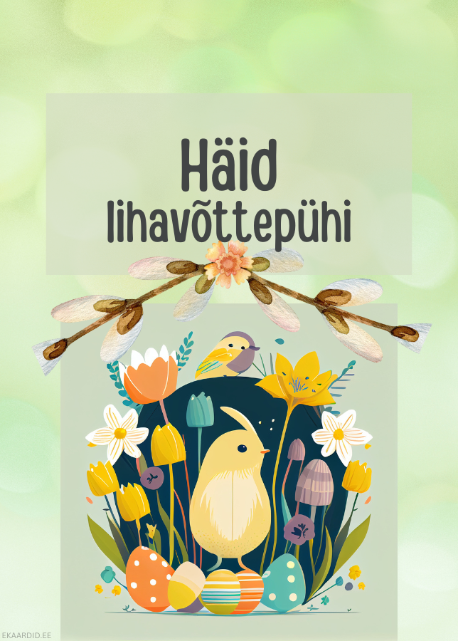 Soovi oma lähedastele rõõmsaid lihavõttepühi selle kauni kevadise kaardiga. Kaardil on kujutatud armsaid lihavõttekukeseid, värvilisi mune ja kevadisi lilli. See on ideaalne lihavõttekaart.