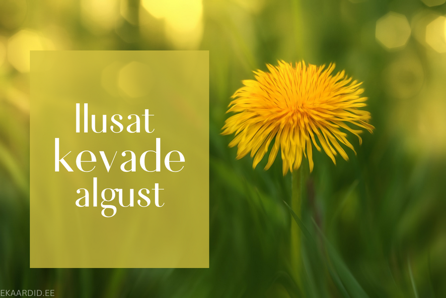 See on imeline kevadine õnnitluskaart, mis on kaunistatud ereda kollase võilillega. Ideaalne kaart kevadise tervituse saatmiseks.