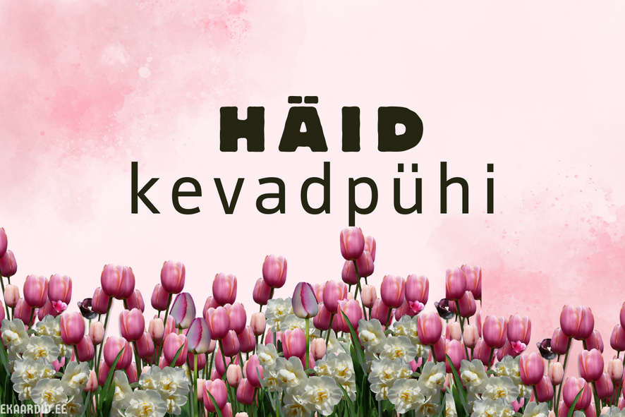 Soovi oma lähedastele ilusaid kevadpühi selle kaardiga, mis on kaunistatud roosade tulbide ja valgete nartsissidega. Ideaalne kaart kevadiste soovide saatmiseks.
