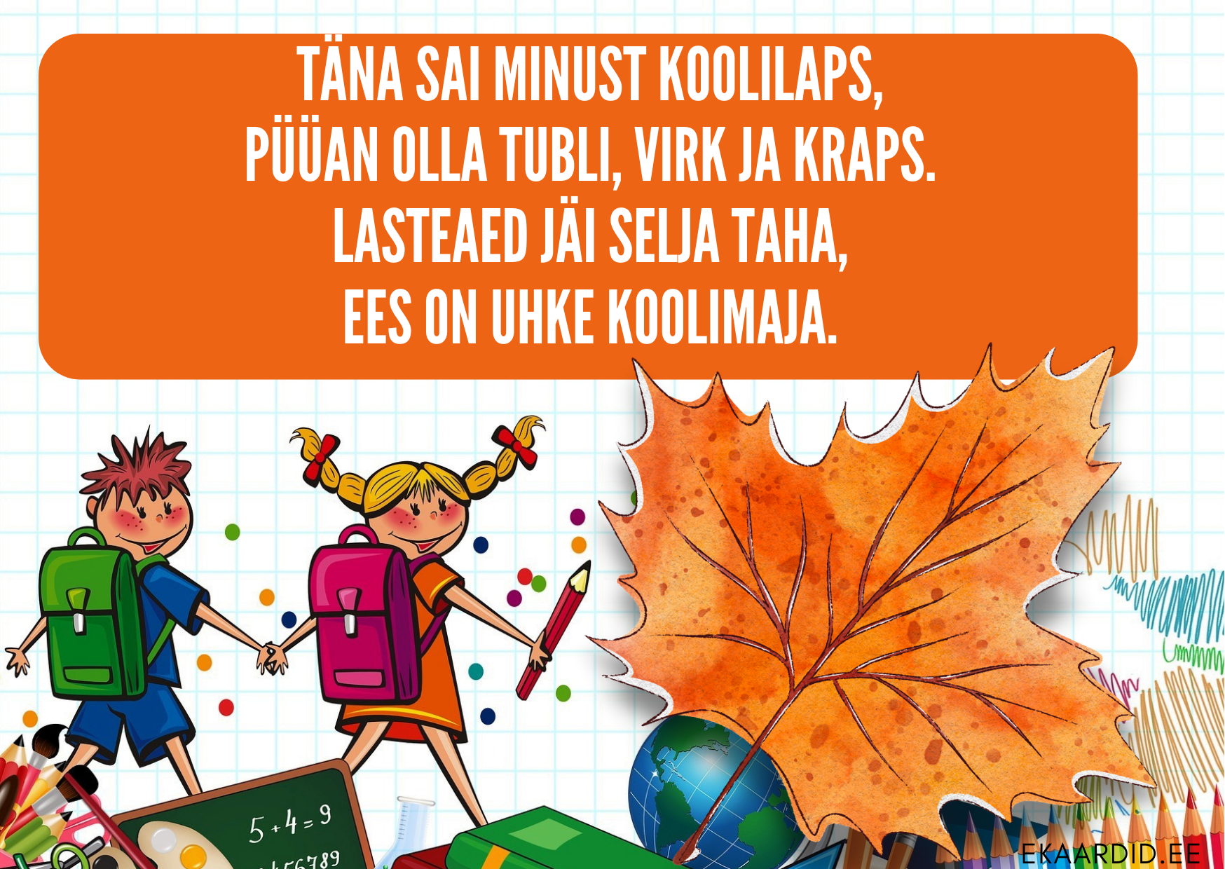 See on armas kaart koolitee alguse puhul. Sobib ideaalselt lastele, kes alustavad kooliteed. Kaardil on kujutatud lapsed koolikottidega ja sügisleht.