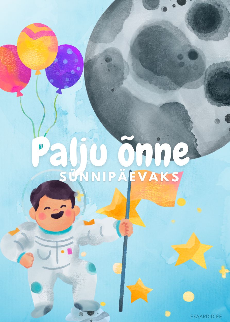 See on suurepärane sünnipäevakaart poisile, kellele meeldib kosmos. Astronaut ja kuu teevad selle kaardi eriti põnevaks.