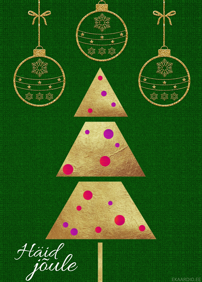Soojad jõulusoovid kuldse jõulupuu kujutisega kaardil. See on ideaalne jõulukaart lähedastele ja sõpradele.