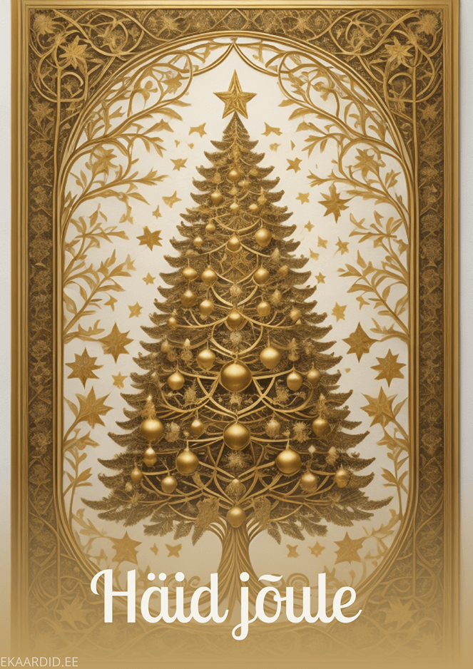 Soojad jõulusoovid kuldse jõulupuu kujutisega kaardil. See on ideaalne jõulukaardina lähedastele ja sõpradele.