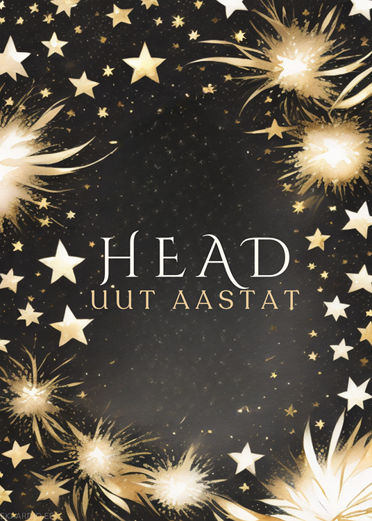 Soovi oma lähedastele head uut aastat selle elegantse kaardiga, mis on kaunistatud kuldsete tähtede ja ilutulestikuga. See on ideaalne uusaasta kaart, mis toob rõõmu ja soojust.