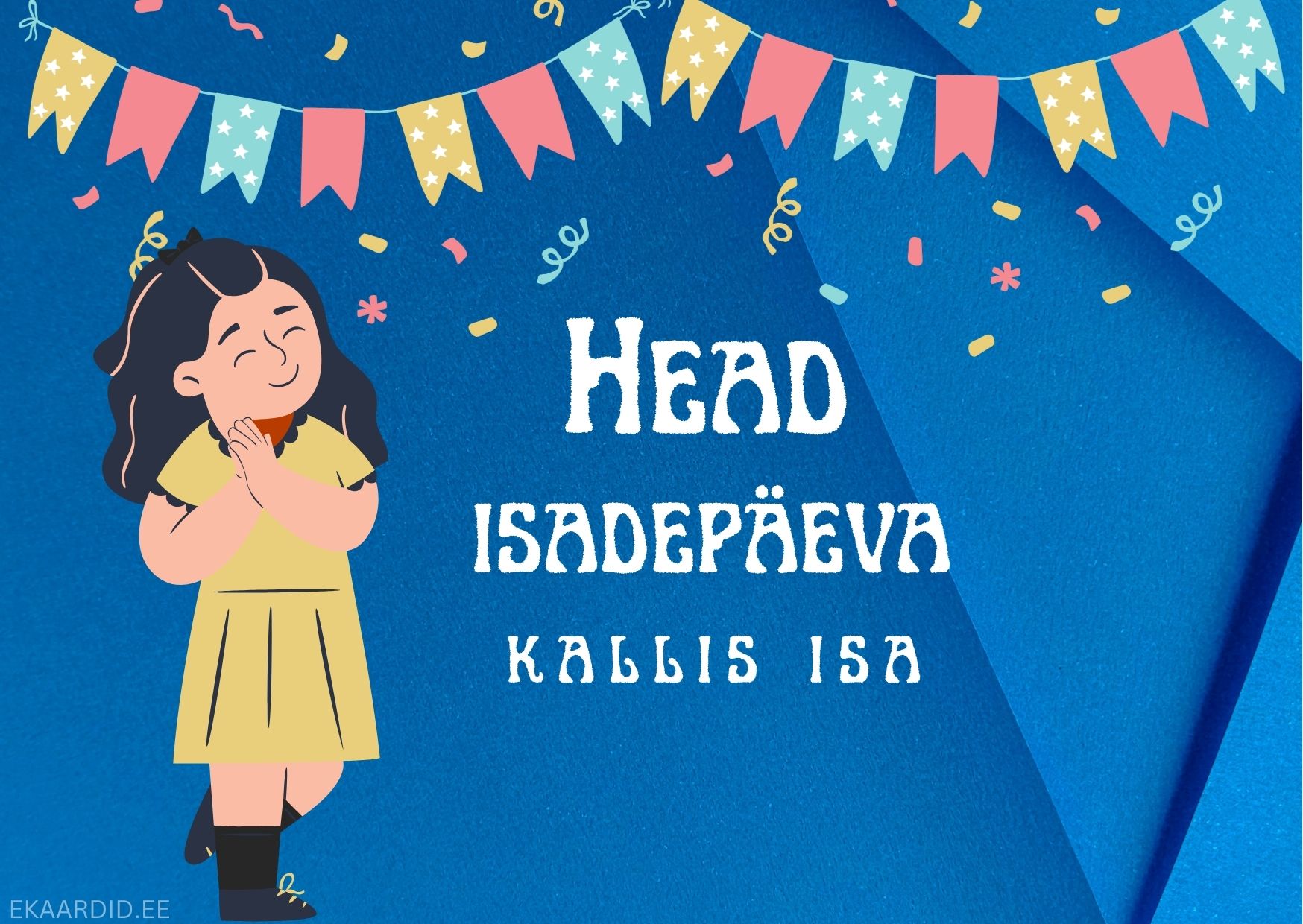 Soovi oma isale head Isadepäeva selle armsa lastekaardiga. Kaardil on kujutatud rõõmus laps, kes soovib isale head Isadepäeva.