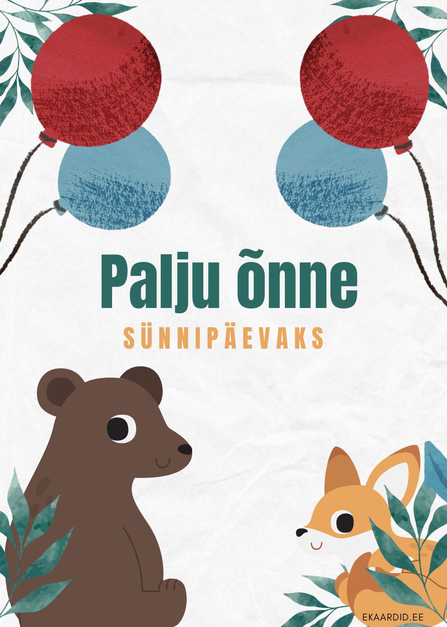 Soovi oma armsale lapsele palju õnne selle armsa loomamotiiviga sünnipäevakaardiga. See on ideaalne sünnipäevakaart väikestele lastele.