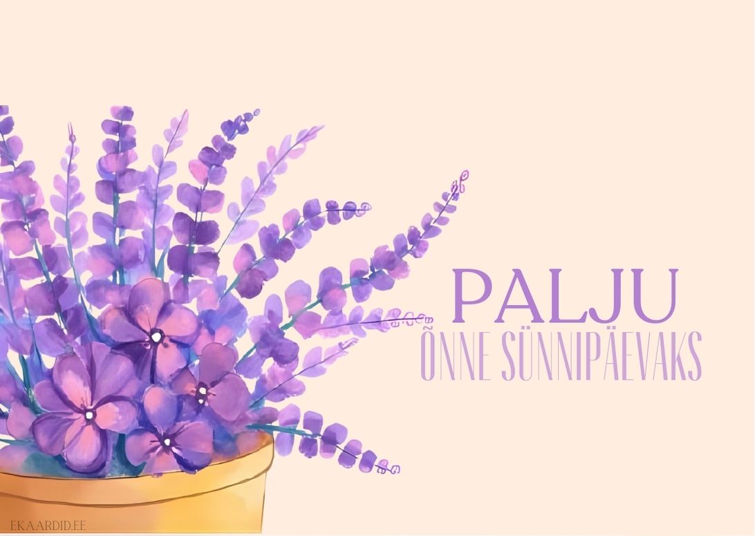 Soovi oma lähedasele palju õnne selle kauni lavendellilledest sünnipäevakaardiga. See on ideaalne sünnipäevakaart neile, kes hindavad lihtsust ja looduslikku ilu.