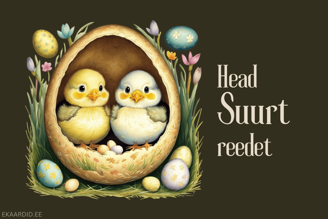 Soojad ja õrnad lihavõttekaardid kahe armsa tibuga munakooris. Ideaalne kaart lihavõttepühade tervituseks.