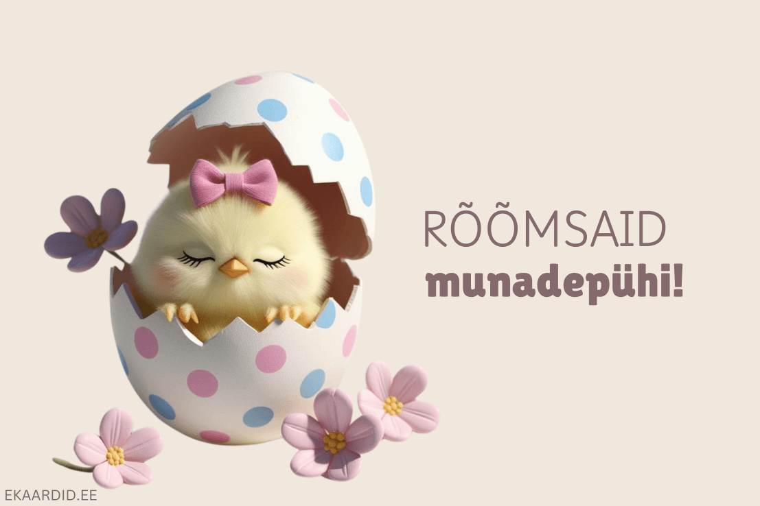 Soovi oma lähedastele rõõmsaid lihavõttepühi selle armsa tibukesega kaardiga. See on ideaalne lihavõttekaart, mis toob naeratuse näole.