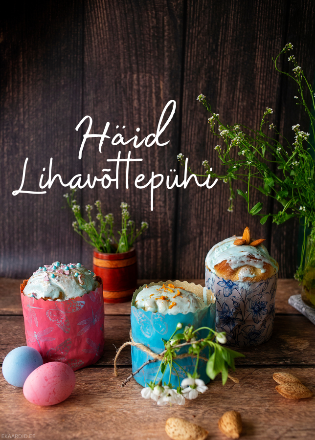 Soovi oma lähedastele rõõmsaid Lihavõttepühi selle kauni kaardiga. Kaardil on kujutatud maitsvad lihavõttekoogid ja õrnad lilled. See on ideaalne Lihavõttekaart.