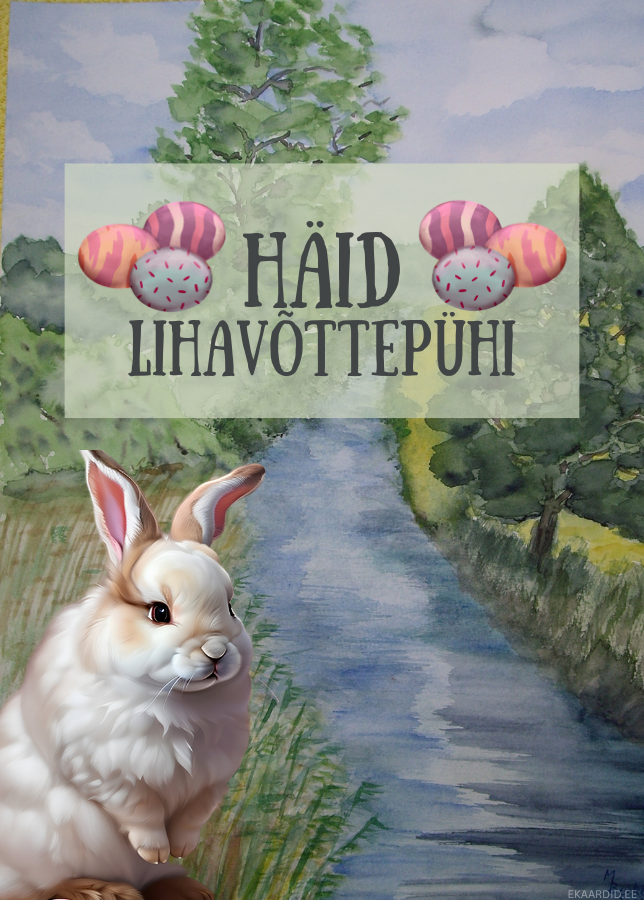 Soovi oma lähedastele rõõmsaid Lihavõttepühi selle kauni kaardiga, millel on kujutatud valge jänese ja värviliste munadega maastik. See on ideaalne Lihavõttekaart sõpradele ja perele.