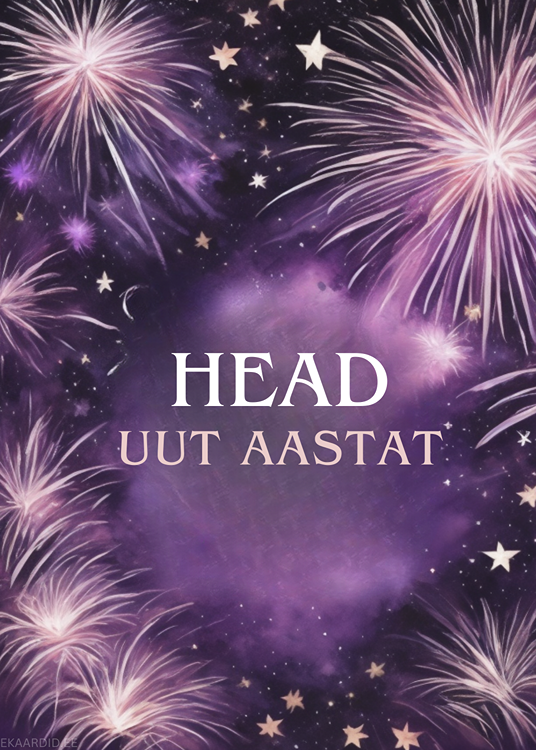 Soovi oma lähedastele head uut aastat selle kauni, lillade ilutulestikutega kaardiga. Ideaalne kaart uue aasta alguse tähistamiseks.
