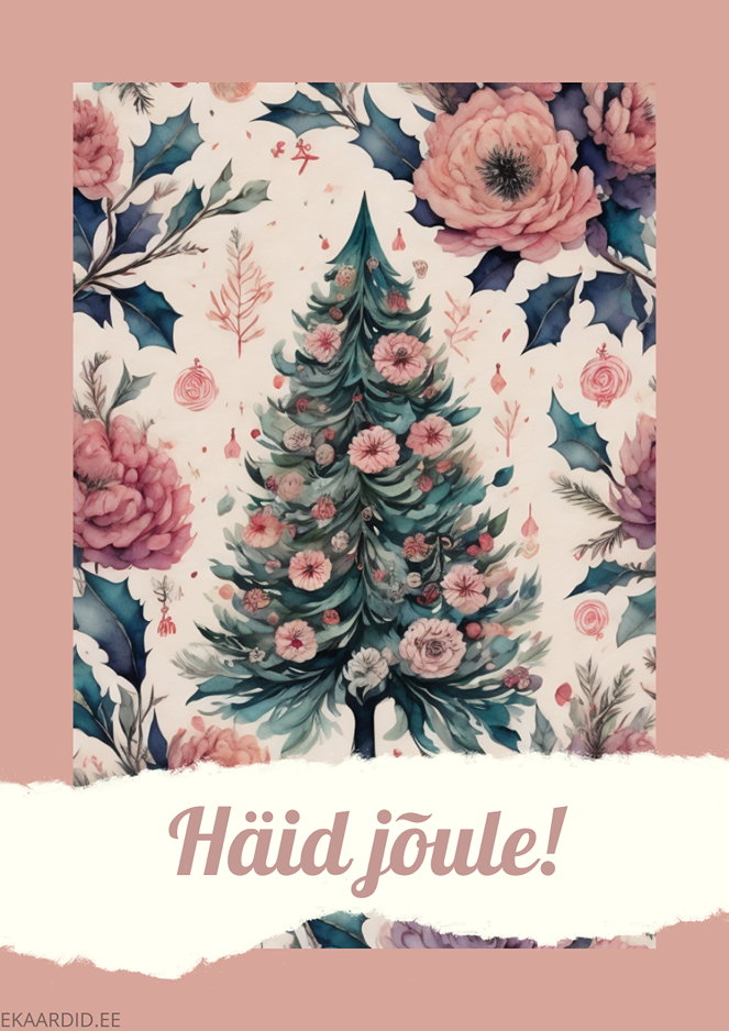 Sooja ja elegantset meeleolu loov jõulukaart, millel on kujutatud lilledega kaunistatud jõulupuu. See on ideaalne jõulukaart lähedastele ja sõpradele.