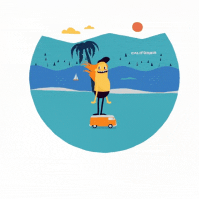 See on rõõmsameelne ja värvikas tervituskaart, mis sobib suurepäraselt sõbrale või pereliikmele. Kaardil on kujutatud lõbus tegelane California rannal.