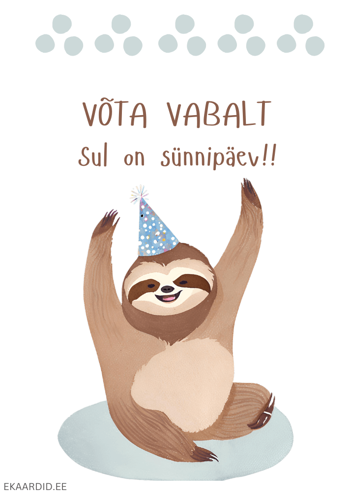 Naljakas ja armas sünnipäevakaart laisikust, kes soovib sulle lõõgastavat sünnipäeva! Saada see humoorikas sünnipäevakaart oma lähedasele. See on suurepärane kingitus sõbrale, pereliikmele või kolleegile.