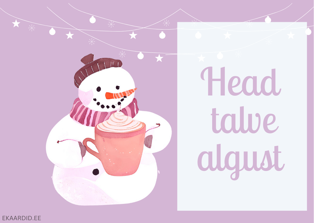 Sooja ja hubast talve algust sooviv kaart lumememmikega, kes naudib sooja jooki. Ideaalne talvise tervituse saatmiseks.