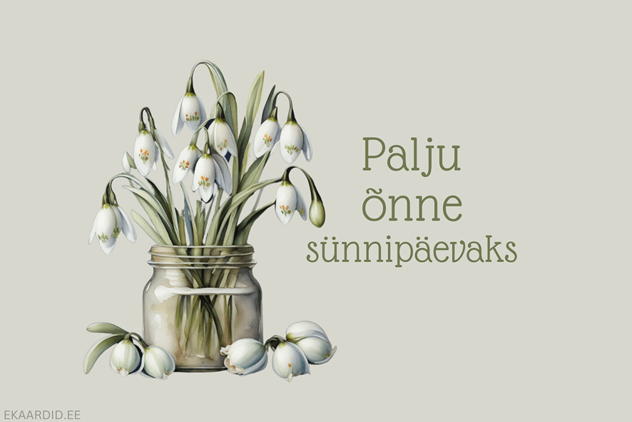 Soovi oma lähedasele palju õnne selle lumikellukestega kaunistatud sünnipäevakaardiga. See on ideaalne sünnipäevakaart kevadise meeleolu loomiseks.