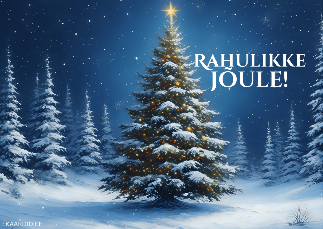 Soovi oma lähedastele rahulikke jõule selle kauni lumise jõulupuuga kaunistatud jõulukaardiga. See on ideaalne jõulukaart sõpradele ja perele.