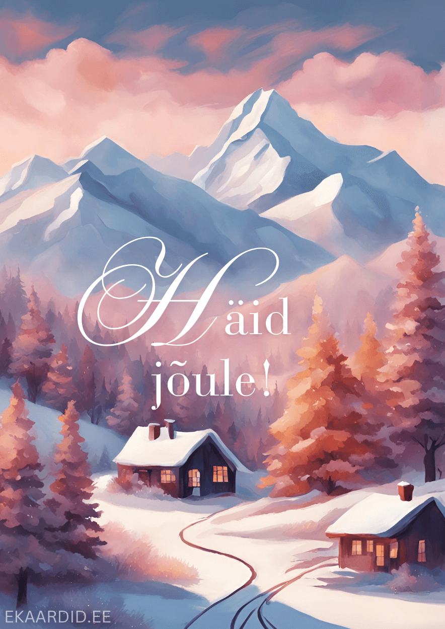 Soovi oma lähedastele rõõmsaid jõule selle lummava jõulukaardiga, millel on kujutatud lumikattelised mäed ja hubased talumajad. See on ideaalne jõulukaart, mis toob sooja ja pidulikku meeleolu.