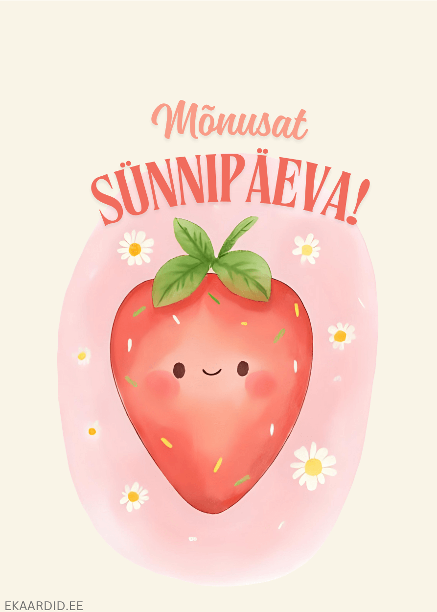 Soovi oma lähedastele head sünnipäeva selle armsa ja magusa maasika kujutisega sünnipäevakaardiga. Ideaalne kingitus sünnipäeva tähistamiseks!