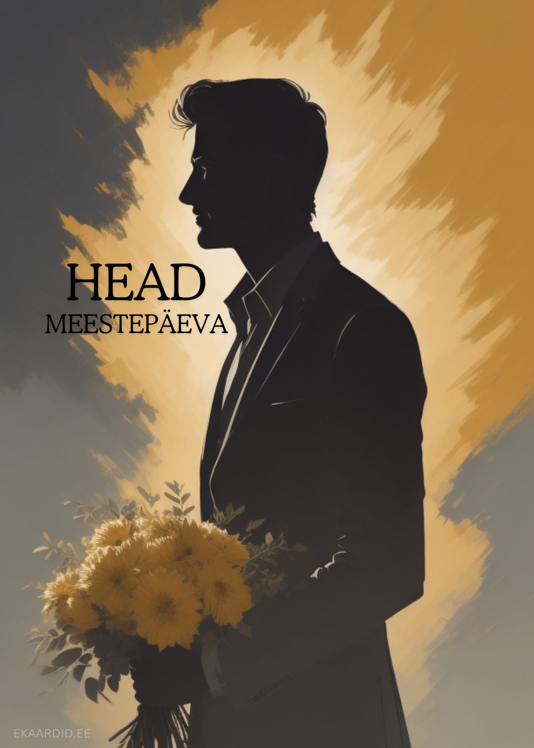 Soovi oma kallimale meeldivat Isade päeva selle elegantse kaardiga. Kaardil on kujutatud mees, kes hoiab käes kollaseid lilli. See on ideaalne Meestepäeva kaart.