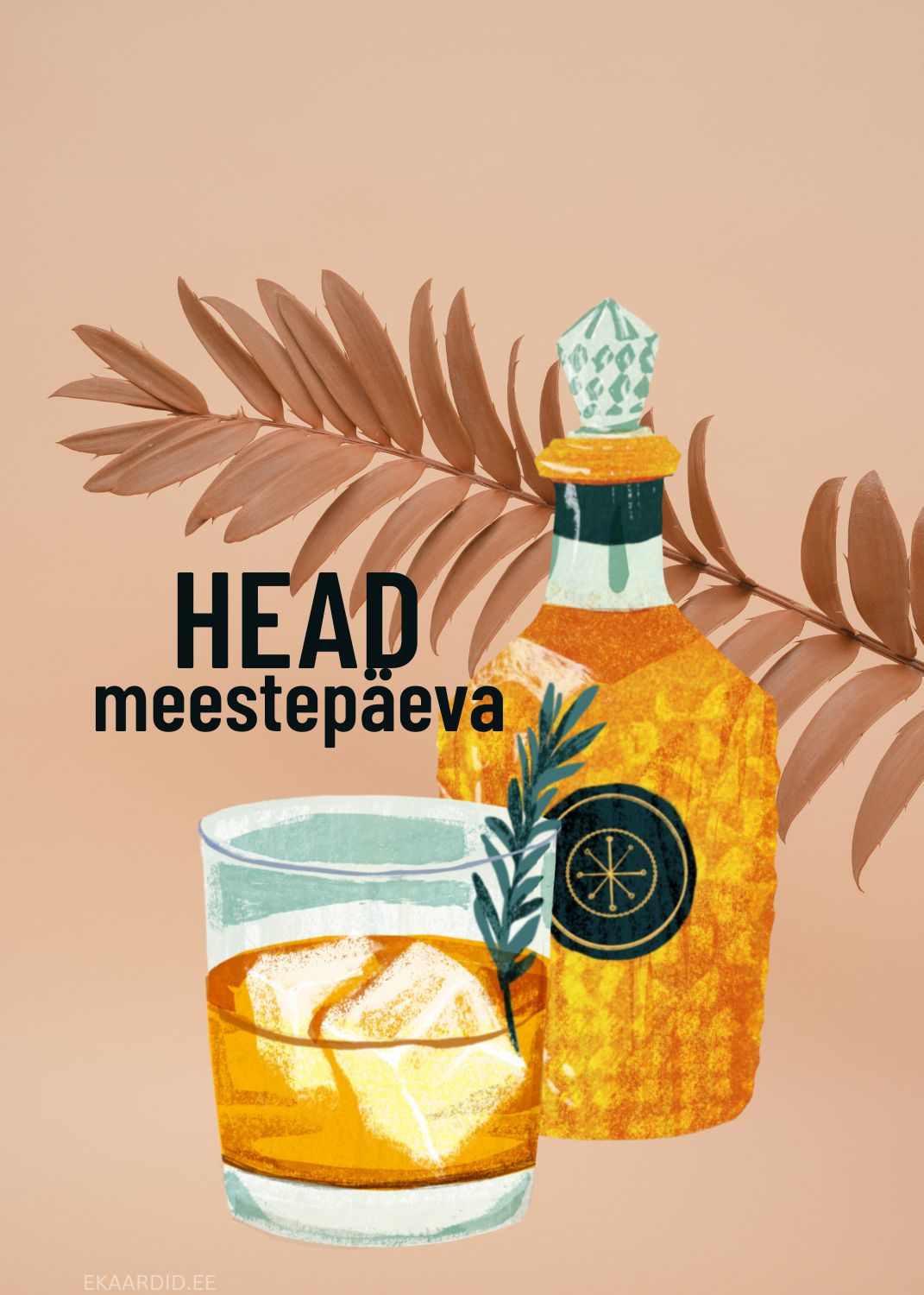 Soovi oma isale, vennale või sõbrale õnnelikku meestepäeva selle stiilse viskiga kaunistatud kaardiga. See on ideaalne Meestepäevakaart, mis väljendab lugupidamist ja soojust.