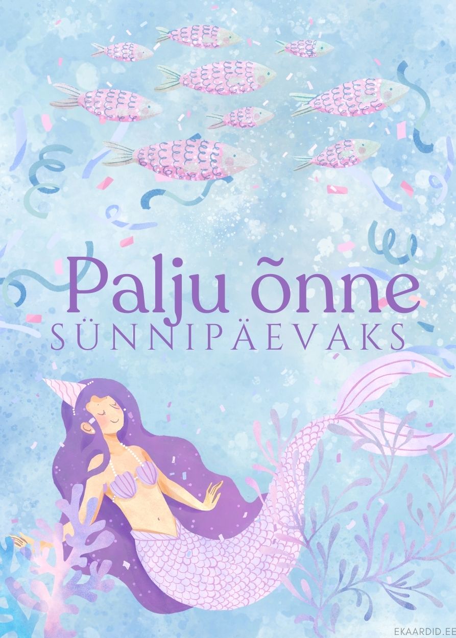 Soovi oma lähedasele palju õnne selle armsa merineitsiga kaunistatud sünnipäevakaardiga. See on ideaalne sünnipäevakaart tüdrukule, kes armastab merd ja maagilisi lugusid.