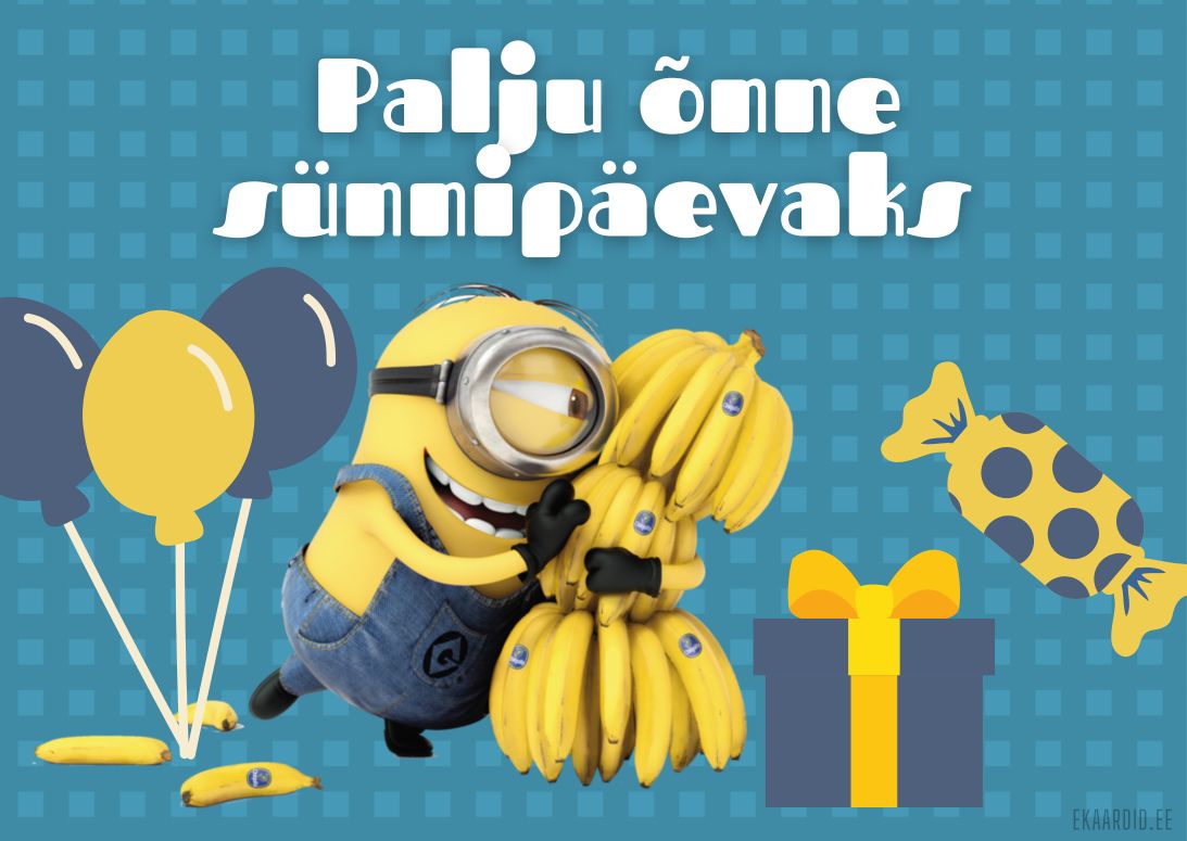 See on naljakas sünnipäevakaart, millel on armas minion, kes hoiab suurt banaanihunnikut. Ideaalne kingitus banaane armastavale sõbrale või pereliikmele.