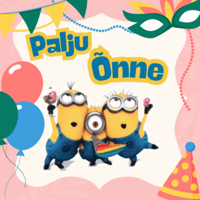 Lõbus ja värviline sünnipäevakaart, millel on armsad Minjonid. See on ideaalne sünnipäevakaart lastele või noortele.