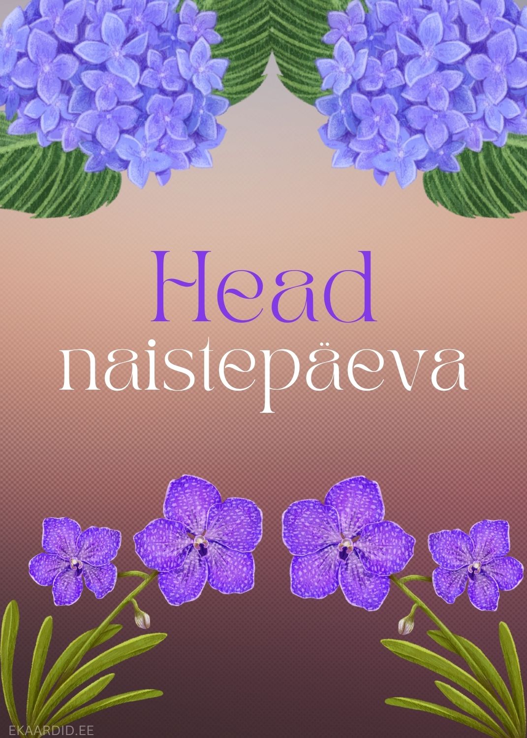 Naistepäeva kaart hortensia ja orhideedega