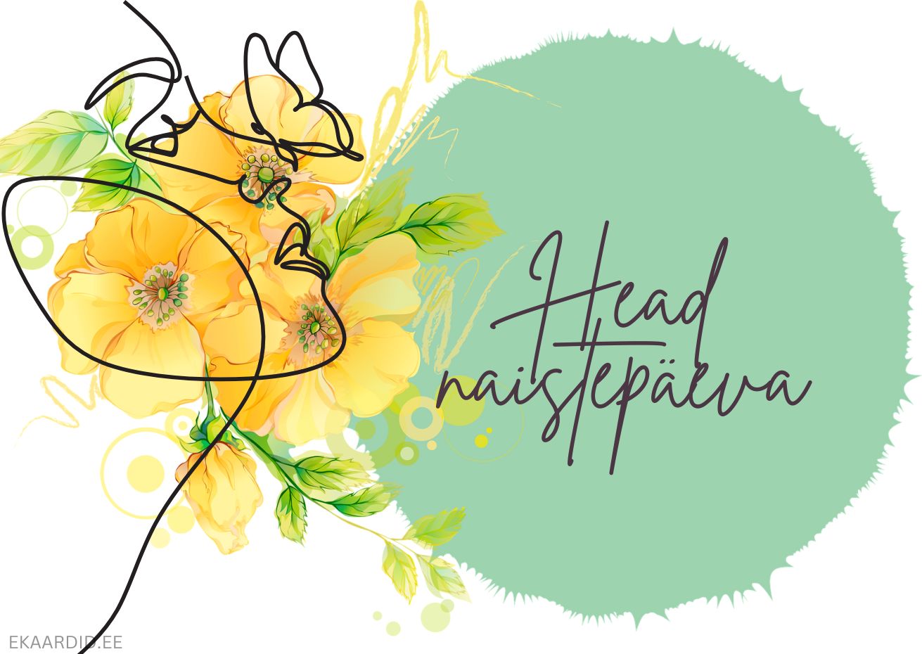 Soovi oma lähedastele naistele ilusat naistepäeva selle elegantse kaardiga. Kaart on kaunistatud kollaste lillede ja naiseliku joonistusega. See on ideaalne Naistepäevakaart.