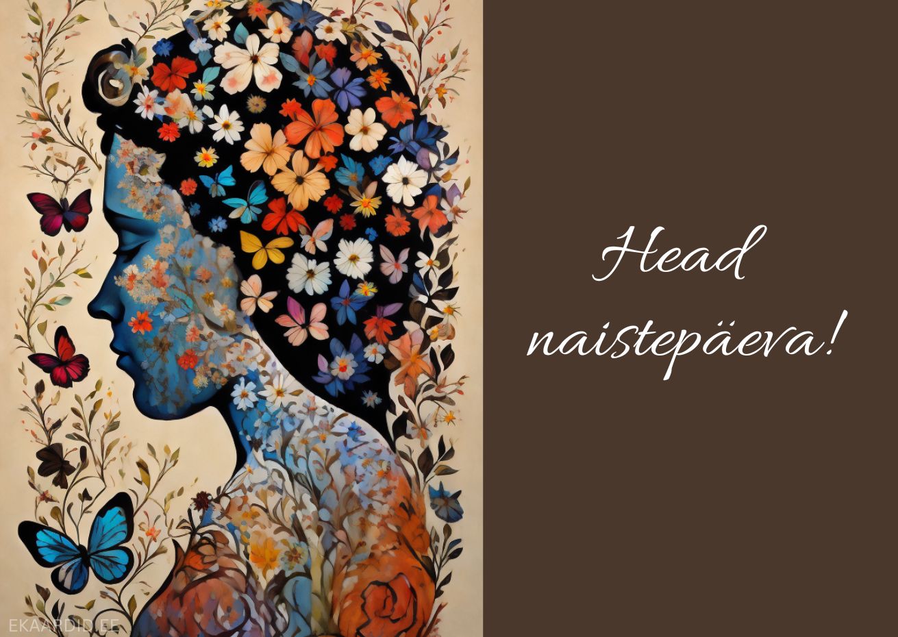 Soovi oma kallimale naistepäeva puhul palju õnne selle kauni lillede ja liblikatega kaardiga. See on ideaalne Naistepäevakaart, mis väljendab armastust ja lugupidamist.