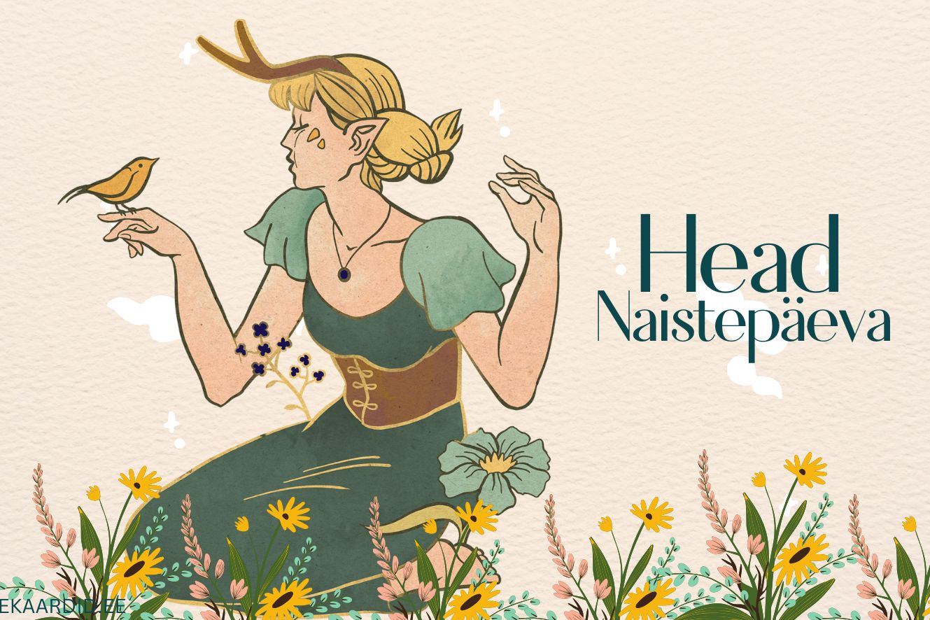 Soovi oma lähedastele naistele ilusat naistepäeva selle kauni ja müstilise kaardiga. Kaardil on kujutatud müütiline naine lillede seas, luues rahuliku ja elegantse meeleolu. See on ideaalne Naistepäevakaart, mis väljendab teie hoolt ja lugupidamist.