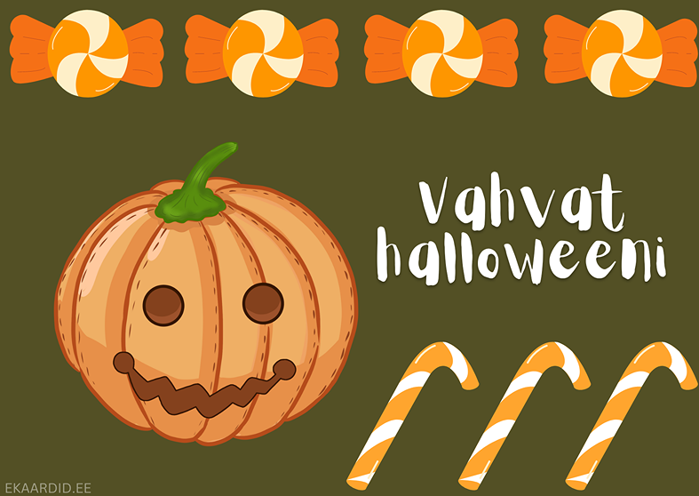 Soovi sõpradele ja perele vahvat Halloweeni! See kaart on kaunistatud lõbusa kõrvitsa ja kommidega. Ideaalne Halloweeni tervituseks.