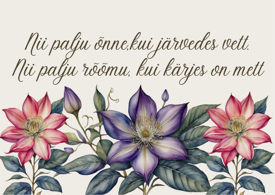 Ilus õnnitluskaart, mis sobib suurepäraselt sünnipäevaks või muuks rõõmsaks sündmuseks. Kaardile on lisatud ilusad lilled ja südamlik õnnitlussõnum. Sünnipäevakaart sobib suurepäraselt igale maitsele.