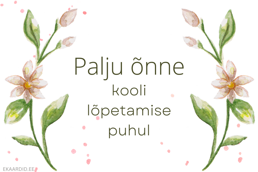 Ilus õnnitluskaart kooli lõpetamise puhul. Kaardil on kujutatud õrnad lilled, mis sümboliseerivad uut algust ja edu tulevikus. See on ideaalne tahtpaevad-kool kaart.