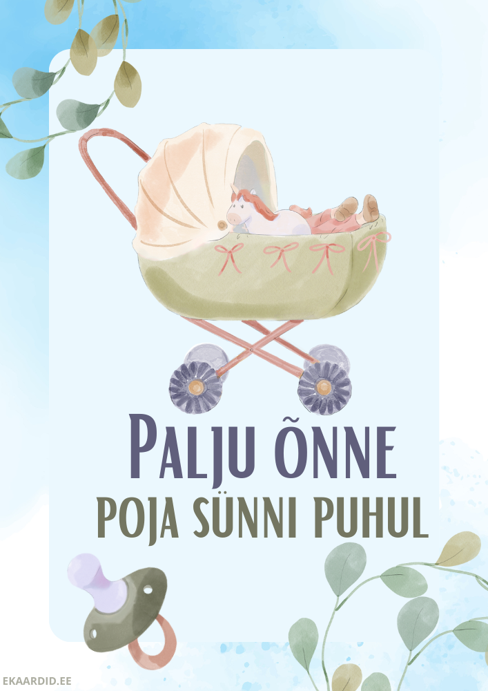 Soovi oma lähedastele palju õnne armsa beebiga! See kaart on ideaalne kingitus poja sünni puhul. Kaunis illustratsioon ja soe sõnum teevad selle kaardi eriliseks.