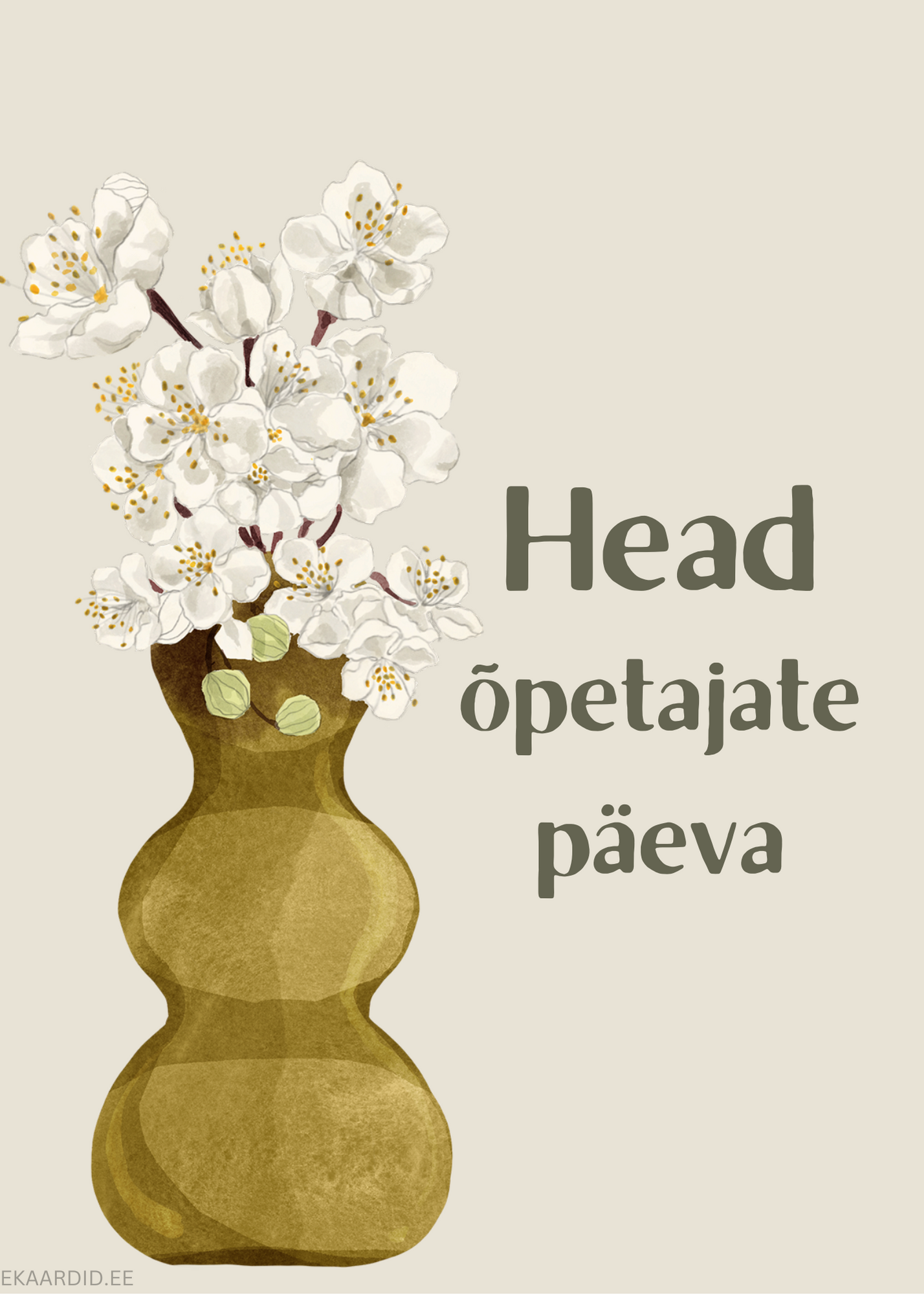 Soovi oma armsale õpetajale ilusat õpetajate päeva selle kauni kaardiga. Kaardil on kujutatud õrnad valged õied kuldse vaasis. See on ideaalne tahtpäeva kaart.